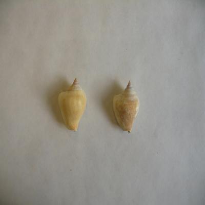 Dos ejemplares. Conchas piriformes, de ápice alto. Color amarillento con dibujos como en zig-zag de color pardo. Boca alargada, labio externo engrosado. Pequeño pliegue sifonal incliando hacia atrás. Interior blanco.