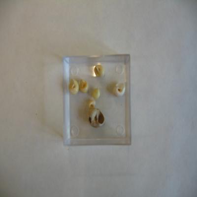 En una cajita, con un papel con inscripción a bolígrafo: "Natica sp. 7 ejemplares. cajón nº6".