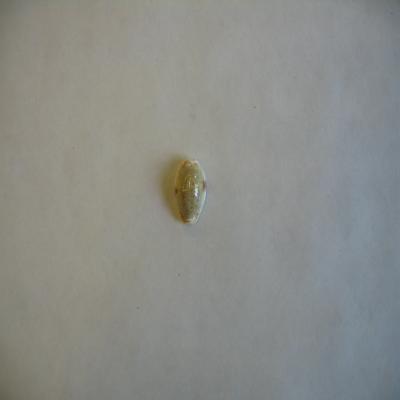 Concha piriforme, con la base aplanada y los laterales reforzados. La última vuelta cubre las anteriores. Superficie brillante. Color del dorso verdoso con puntos pardos y más pequeños blancos. Laterales y base blancos, pero en los laterales hay dos manchas rectangulares pardo oscuro. Boca alargada, abierta por los dos extremos, y con los labios con muescas.