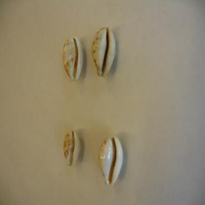Cuatro ejemplares. Concha oval-piriforme, abomabada, con base plana. La última vuelta cubre las anteriores. Superficie brillante (menos en una que está más desgastada). Dorso color crema, con franjas espirales pardo, y puntos pardos grandes y pequeños por toda la superficie. Base blanca, labios dentados con los espacios interdentales de color pardo o naranja.