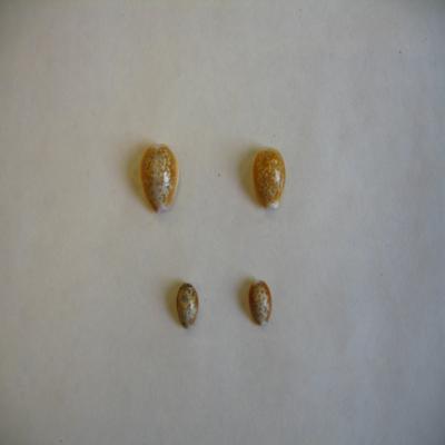 Molusco. Clase Gasteropoda. O. Mesogasterópodos. Fam. Cypraeaidae Concha ovoide, con el dorso abombado, los lados reforzados y gruesos y el lado ventral plano. Brillante. La última vuelta cubre las anteriores. Coloración del dorso clara o grisácea con manchas pardas y blancas en el centro y a los lados dos franjas pardas; la zona ventral es anaranjada-parduzca. Labios dentados, boca muy estrecha y larga, abierta por los dos extermos.
