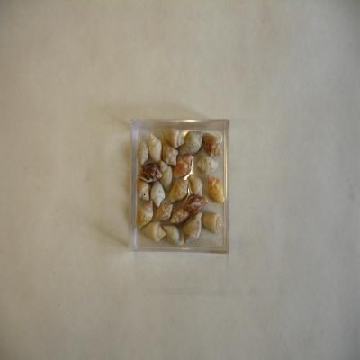 Molusco. Clase Gasteropoda. O. Neogasterópodos. Fam. Columbellidae 18 ejemplares. Concha fusiformes, de ápice más o menos alto. Finas costillas espirales. Coloraación desde blanca, parda-amrillenta a parda oscuro, algunas con manchas o líneas axiales blancas. Boca alargada, interior claro. Columela y labio externo dentados internamente.