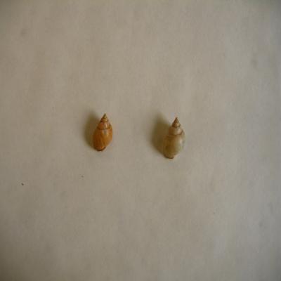 Dos ejemplares. Concha ovalada, de ápice alto. Las primeras espiras tienen costillas axiales. Estrías axiales y en la última espira, cerca de la zona sifonal, también espirales. Color crema o pardo con alternancia de manchitas claras y oscuras bajo la sutura. Boca oval, interior y columela blancas. Columela silsa. Pliegue sifonal inclinado hacia atrás y la izquierda.