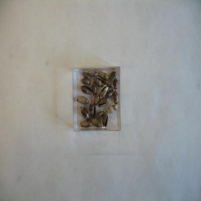 En una cajita, con un papel con inscripción a bolígrafo: "Por el tamaño parece pertenecer al género Olivella sp.".