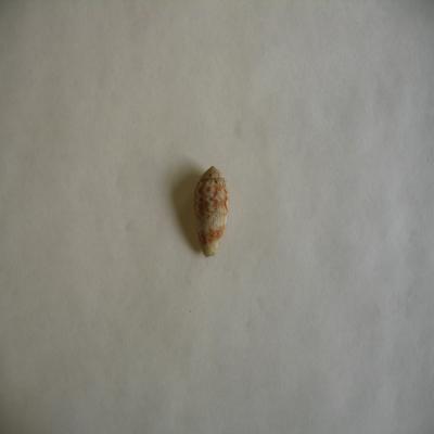 En una cajita, con un papel con inscripción a bolígrafo: "Conus catus [Hwass 1792] 1 ejemplar. 40mm. Indopacífico y pacífico occidental. Pág 206 Lám 48 nº18".