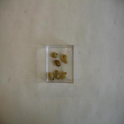 Seis ejemplares. Concha ovalada, de espira muy baja, y gran espira terminal. Fina, translúcida. Espiras redondeadas. Finas estrías axiales. Color blanco sucio o algo pardo. Boca grande, semicircular. Interior translúcido. Columela color claro, recta.