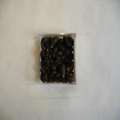 Más de venticinco ejemplares. Concha algo piriforme, de ápice elevado. Superficie lisa, con estrías axiales. Color pardo-negruzco. Boca oval, apuntada por arriba. Interior blanco con líneas espirales pardas. Columela blanca u oscura en los ejemplares más oscuros.