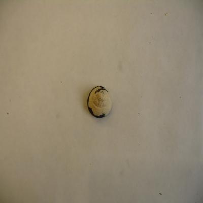 Concha grande, de forma cónica, espiras que van aumentando su tamaño. Estrías axiales. Color negruzco, aunque casi toda la superficie se encuentra cubierta por una capa blanca. Boca amplia, redondeada, con interior blanco nacarado. En el centro una especie de columela blanca con un pequeño hundimiento a modo de ombligo. Boca tapada por un algodón.