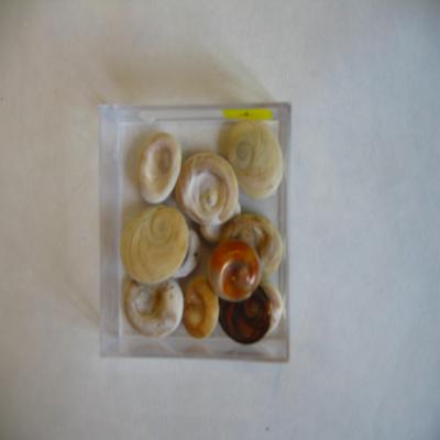 -Ovalados, bastenate plano, de forma helicoidal plano por el lado interior, y más abombado el exterior. Interior claro o pardo, exterior claro o rosado-anaranjado. 12 unidades.