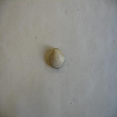 Las dos valvas que corresponden al mismo ejemplar, unidas. Bastante circulares, con umbo alto e inclinado. Superficie formada por múltiples líneas concéntricas. Color blanco.