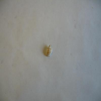 Un ejemplar. Concha oval-redondeada, de ápice alto. Escultura axial solamente en las nudosidades de los cantos. Superficie brillante, color crema con franjas espirales pardas (apenas se aprecian). Estrías axiales, más marcadas en la zona cercana a la boca de la última espira y espirales en la zona basal. Boca oval, apuntada por arriba. Pliegue sifonal escotado hacia atrás. Gran columela a modo de escudo liso, plano y blanco, con un diente en su zona superior. Interior blanco con franjas espirales pardas, y labio externo dentado internamente.