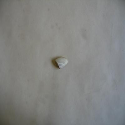 Un ejemplar completo unido. Valvas simétricas, forma, oval-triangular, con el umbo elevado no central y un lado más largo y redondeado. Estrías radiales y marcas concéntricas de crecimiento. Color blanco con líneas concéntricas algo azuladas. En el borde como fina dentición.