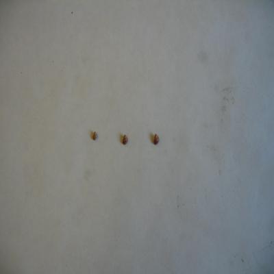 Tres ejemplares, muy pequeños. Concha oval, barriguda, de ápice alto. Clara con filas espirales de diferentes difujos rojizos o que alternan rojo y blanco. Boca ovalada, tapada por un opérculo globoso (menos en una). Interior y columelas claros.