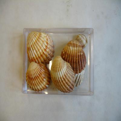Molusco. Clase Pelecypoda. Subcl. Heterodonta. Fam Cardiidae Seis ejemplares. Valvas más o menos redondeadas, abombadas, con umbo grueso y alto, centrado. Anchas costillas radiales, y estrías concéntricas de crecimiento. Colores pardos, o claros, la mayoria con franjas concéntricas parod-oscuro. Interiro blanco aporcelanado. Borde marcado, debido a las costillas y los valles dejados entre ellas.