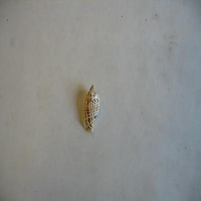 Molusco. Clase Gasteropoda. O. Mesogasterópodos. Fam Strombidae Un ejemplar. Concha fusiforme, ápice no muy alto. Eforma anormal de la concha motivada por espiras irregulares y dislocaciones de la sutura. Nudosidades gruesas en las espiras superiores. Color blanco con manchas pardas irregulares. Se observan estrías espirales y marcas axiales. Boca alargada, de color violeta purpúreo, al igual que la columela. Labio externo con una escotadura superior y un pliegue central, y dentado internamente. Canal sifonal hacia atrás.