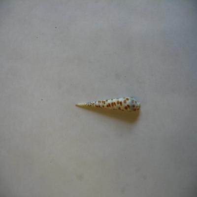 Un ejemplar. Concha cónico-puntiaguda, con estrías axiales y marcas espirales. Color claro con dos filas de manchas pardas por espira, menos en la última que son tres. Boca ovalada, interior claro. Columela algo enrollada, blanca.