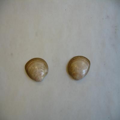 Molusco. Clase Pelecypoda. Subcl. Heterodonta. Fam. Veneridae. Las dos valvas que corresponden al mismo ejemplar. Valvas simétricas, triangular-ovales, con el umbo incliado. Superficie brillante. Marcas concéntricas de crecimiento. Color cremoso, parduzco cerca del borde. Interior blanco aporcelanado, con seno paleal apuntado y dos marcas musculares.