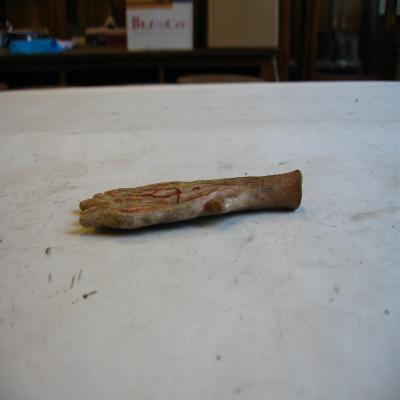 Modelo de glándula gástrica péptica atrofiada, cerrada por un crecimiento excesivo de células. Tamaño ampliado, una sola pieza. Superficie plana ramificada, aunque las ramas están muy juntas y poco voluminosas. Se observan los vasos y capilares sanguíneos. La luz del tubo es muy pequeña.