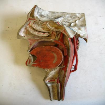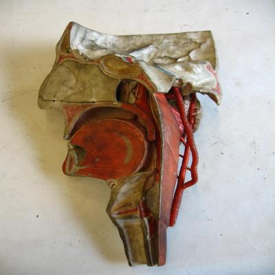 Modelo anatómico de cara, laringe y tráquea humana (corte longitudinal)
