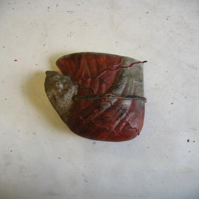 Directamente sobre la balda. Posee una inscripción con bolígrafo en la parte interna: "Anatomie Clastique du D. Auzoux 1910". También posee etiquetas escritas a máquina con números indicando las diferentes zonas. Otras etiquetas también a máquina indican el orden y la dirección en que se desmontan las diferentes piezas.