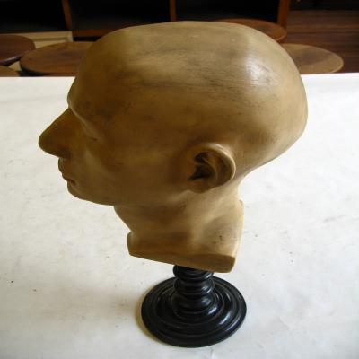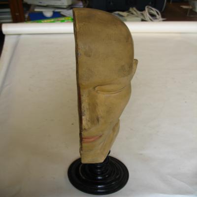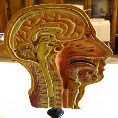 Parece corresponder al modelo de corte vertical de cabeza humana que aparece en el inventario del material científico de la Cátedra de Filosofía realizado en 1946. Podría corresponder a uno de los 11 modelos anatómicos clásicos que formaban parte de la colección zoológica según las memorias del curso académico 1877-78.