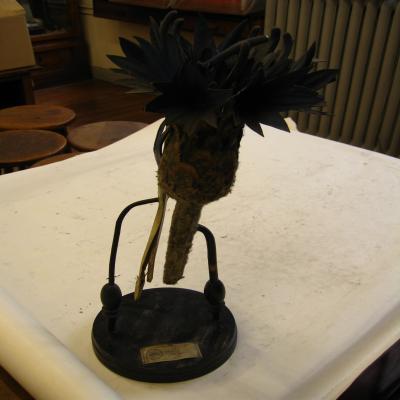 Sobre un soporte de madera, con una etiqueta antigua con inscripción a máquina y bolígrafo: "MATERIAL CIENTIFICO DE ENSEÑANZA. CULTURA. EIMLER-BASANTA HAASE (SL.) MADRID. Nº 131410/8. CENTAUREA CYANUS. Compositae…". Una de las varas metálicas que sostiene los modelos posee otra etiqueta con inscripción "a".
