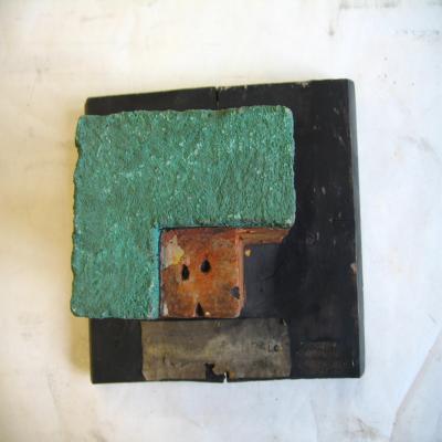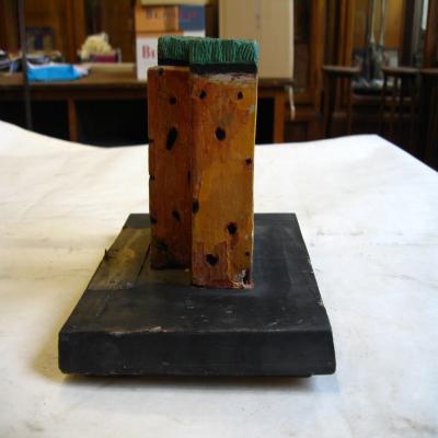 Sobre un soporte de madera. Tiene unida una etiqueta antigua, en mal estado, con inscripción con bolígrafo poco legible: "Perfil de un suelo laterítico". Hay otra etiqueta al junto a la anterior, con inscripción también con bolígrafo, muy oscurecida: "Francisco Espinosa García (7º curso)".