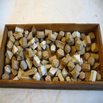 Modelos cristalográficos. Colección de más de cien figuras cristalográficas hechas de papel, de diverso tipo y sistema. El conjunto está compuesto de: -Formas sencillas. -Combinaciones de figuras. -Maclas (agrupaciones simétricas de cristales idénticos).