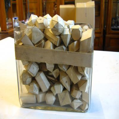 Modelos cristalográficos. Colección de más de cien figuras cristalográficas hechas de papel, de diverso tipo y sistema. El conjunto está compuesto de: