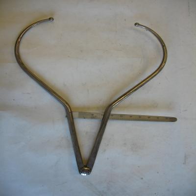 Se trata de un antropómetro o compás curvo para medir grandes diámetros, que por su tamaño probablemente se trate de un compás torácico. Consta de una escala graduada y sus ramas (dos) son curvas. La escala graduada se coloca entre las dos ramas, es recta, y se puede mover; una tuerca fija la escala, manteniendo la medida.