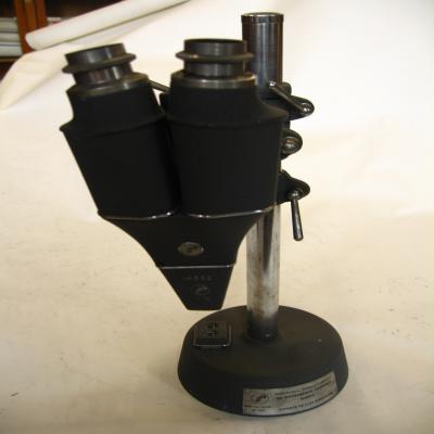 Instrumento óptico. Lupa binocular con soporte, que permite gran amplitud de movimiento de la lupa. Formado por varias piezas: