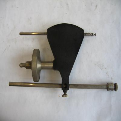 Instrumento. Está formado por un triángulo de plástico con una escala de 0 a 50, con una flecha que señala la medida y va unida a una vara de metal, que se mueve e indica la distancia. Hacia la mitad tiene otra pieza de metal en un lado, y en la parte inferior otra que tambien se puede desplazar o fijar por medio de una tuerca.