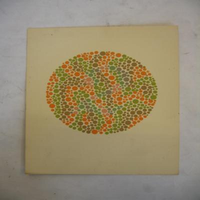 Test para el daltonismo. Serie de nueve láminas destinadas a facilitar el diagnóstico rápido y exacto de la ceguera congénita para los colores, que es la forma más común de ceguera cromática. Las láminas son: