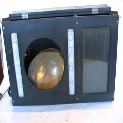 Aparato para medir la resistencia al deslumbramiento según el Dr. Melian. 1-El aparato consiste en una caja de madera rectangular, dividida por un tabique vertical en dos compartimentos cerrados para que no pase la luz del uno al otro. En uno de ellos se haya colocado un faro de automóvil, cuya intensidad se varía con una resistencia. A ambos lados del faro hay dos franjas verticales de cristal opalino con diferentes números pintados en ella, iluminados por transparencia desde el interior. El otro compartimento se haya dividido por dos tabiques horizontales perfectamente ajustados en tres espacios que se iluminan independientemente (en el lateral hay tres interruptores, uno por cada compartimento). La cara anterior de esta parte de la caja consiste en un cristal opalino que lleva tres filas de optotipos de Snellen, que representan V=6/6 de las cuales una de ellas corresponde al espacio del centro y las otras dos a los espacios superior e inferior. La iluminación de estos dos últimos es simultánea; la que corresponde al espacio central se haya conectada con el faro de manera que cuando este se enciende aquella se haya en oscuridad y se ilumina cuando se apaga el faro. Por delante del cristal que lleva las escalas se encuentra un vidrio fotométrico que la cubre en toda su extensión, permitiéndonos mantener ocultas las escalas, y por otra parte, disminuir su luminosidad. En la parte superior hay una tapa que permite ver el interior. 2-Hojas de instrucciones que se encuentran dentro de un sobre que contiene más instrucciones de tests y pruebas de psicología y filosofía. 3-Hoja sobre la prueba de deslumbramiento.
