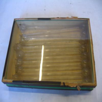 Podrían formar parte del material de cristal adquirido por el instituto que aparece en la memoria de 1883-84. También podrían corresponder al material de laboratorio adquirido por el instituto en el año 1949-57, según la memoria de ese curso o al material de vidrio que aparece en el inventario del Laboratorio de Agricultura y Técnica Industrial realizado por el profesor Bustinza en 1970.
