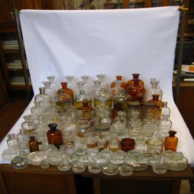 Podrían corresponder a una o varias de las colecciones de frascos y materiales de cristal que adquirió el instituto entre los años 1878-1884, según las memorias del insituto.