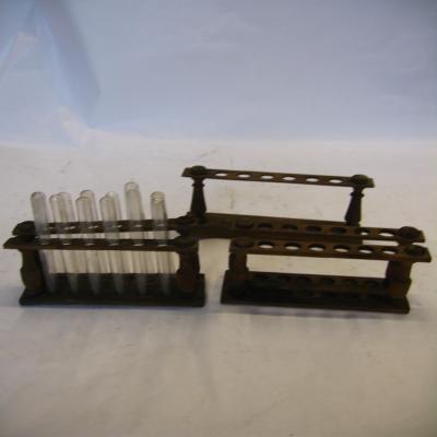 Podrían corresponder a la colección de material de laboratorio, entre ellos tubos de ensayo, que es adquirido en 1883-84, en 1948-49 o 1949-57, según las memorias. También podrían corresponder a las gradillas y material de vidrio que aparece en el inventario del Laboratorio de Agricultura y Técnica Industrial realizado por el profesor Bustinza en 1970.