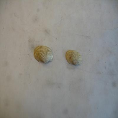 Dos valvas oval-trapezoidales, con el umbo no central y un lado más largo. Costillas radiales y marcas concéntricas de crecimiento. Color blanco. Interior blanco, borde con muescas, dos marcas musculares (una más grande), y cierre recto con varios dientes iguales.